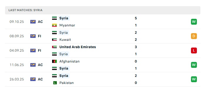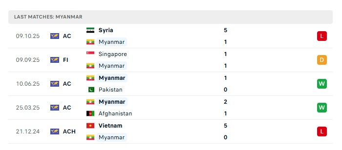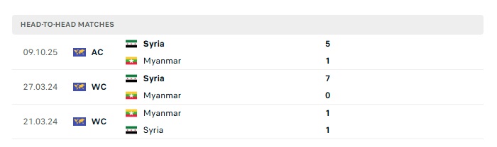 Theo ghi nhận từ các chuyên gia thì phong độ thi đấu gần đây của hai đội không có sự chênh lệch nào quá lớn. Tính trong 9 trận gần nhất của Syria, họ đã có 5 chiến thắng, hòa 1 và chỉ thua 3. Trong khi đó thì Myanmar đã thắng 3, hòa 2 và thua 2 trong 7 trận đấu gần nhất của mình. Như vậy thì các chuyên gia đều tin rằng ở trận đấu này, Syria sẽ chỉ có thể thắng với cách biệt tối đa 2 bàn.