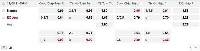- Kèo tỷ số H2 Nantes vs Lens: 0-2