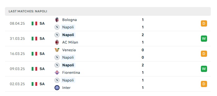 - Phong độ gần đây Napoli