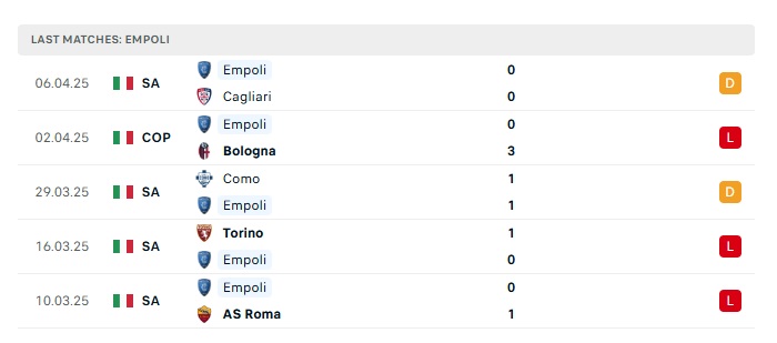 - Phong độ gần đây Empoli