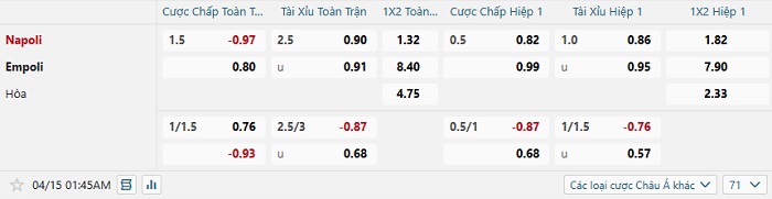 Soi kèo châu Á, kèo Napoli vs Empoli