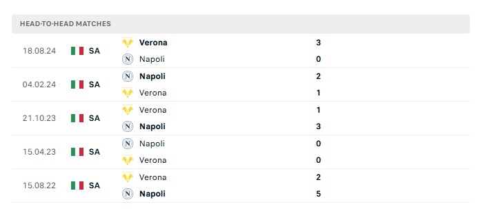 - Kèo tỷ số H2 Napoli vs Verona: 4-1