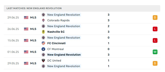 Phong độ gần đây New England vs Inter Miami