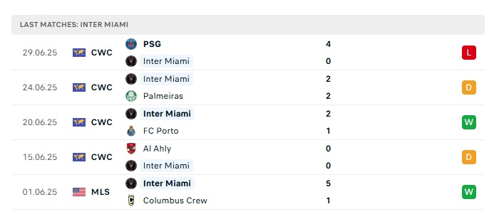 - Phong độ gần đây Inter Miami