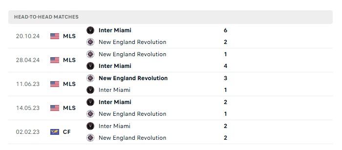 Lịch sử đối đầu New England vs Inter Miami
