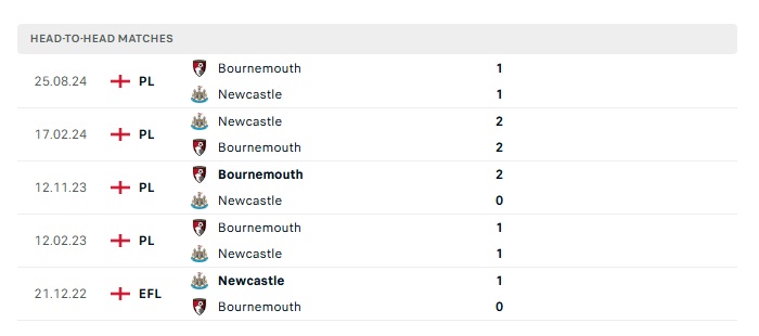 - Kèo tỷ số H2 Newcastle vs Bournemouth: 2-1