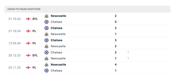 - Kèo tỷ số H2 Newcastle vs Chelsea: 1-1