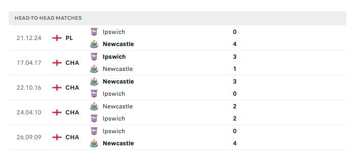 Lịch sử đối đầu Newcastle vs Ipswich