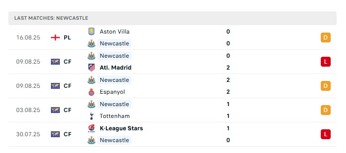 Bên cạnh những kết quả trên thì cũng nên biết rằng giai đoạn tiền mùa giải, Newcastle đã hoàn toàn thua kém đối thủ về phong độ thi đấu. Cụ thể, Newcastle có 3 hòa và 2 thua trong 5 trận gần nhất bao gồm cả trận ra quân với Aston Villa. Trong khi đó thì Liverpool đã thắng 4 và chỉ thua 1 trong 5 trận gần nhất. Do đó, các chuyên gia đều tin rằng trận đấu hôm nay sẽ có Liverpool là đội tự tin giành chiến thắng.