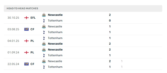 - Kèo tỷ số H2 Newcastle vs Tottenham: 1-1