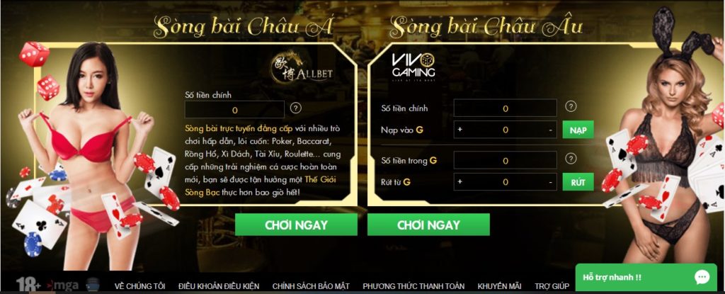 • Trò Chơi ( Baccarat, BlackJack, Roulete, Sic Bo, Tri Card Poker… )