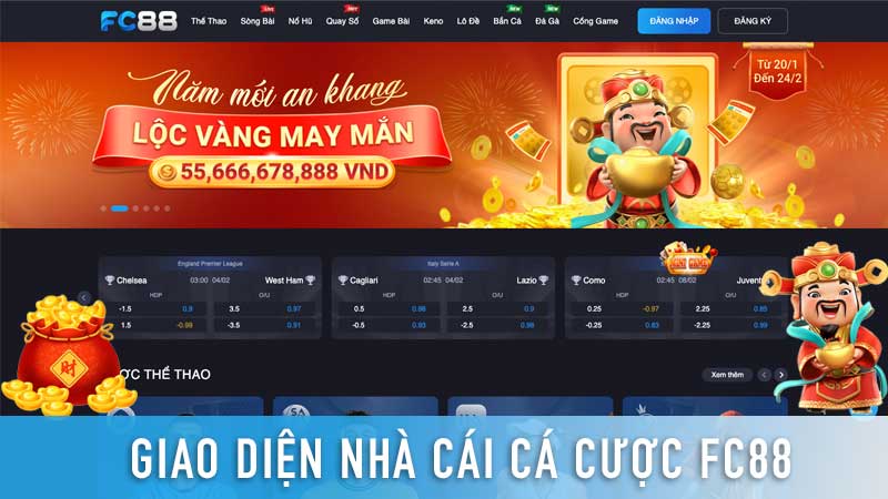 - Phần đầu giao diện: Chính là những tính năng đăng ký và đăng nhập cùng với đó là một menu danh sách sản phẩm đang được FC88 cung cấp hiệp nay.