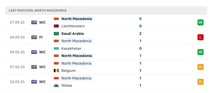 Phong độ gần đây North Macedonia vs Kazakhstan