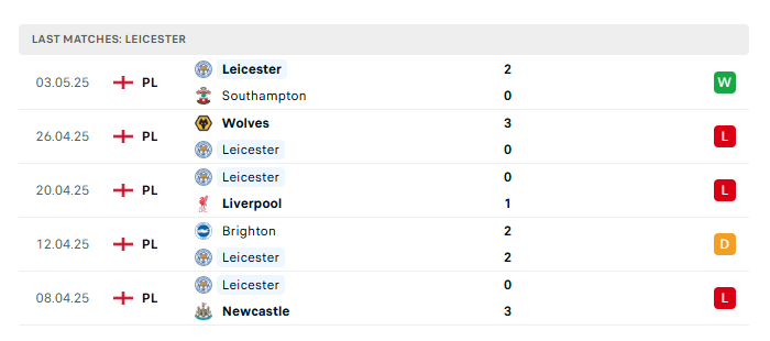 Phong độ gần đây Nottingham Forest  vs Leicester City