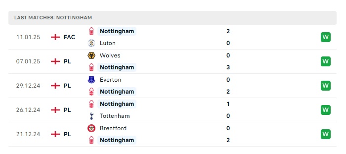 - Phong độ gần đây Nottingham Forest