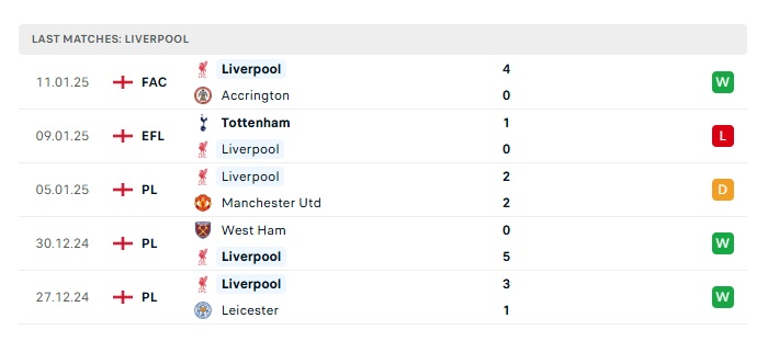 - Phong độ gần đây Liverpool