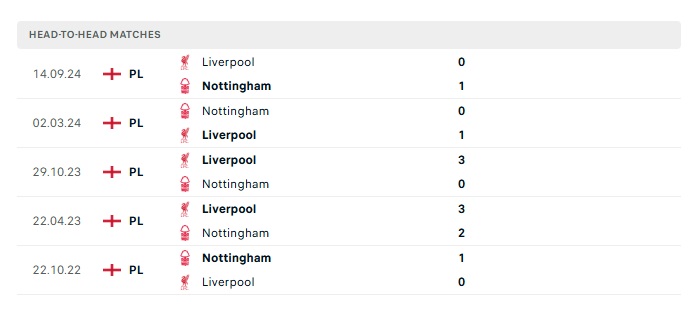 Phong độ gần đây Nottingham Forest vs Liverpool