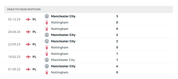 Lịch sử đối đầu Nottingham Forest vs Man City