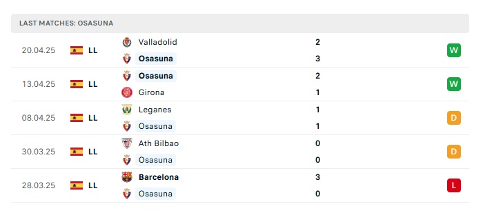 • Phong độ gần đây Osasuna