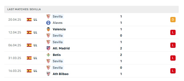 • Phong độ gần đây Sevilla