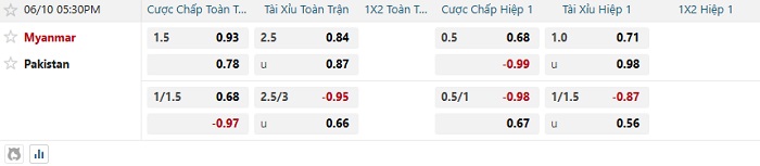 - Kèo tỷ số H1 Pakistan vs Myanmar: 0-1