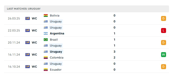 • Phong độ gần đây Uruguay