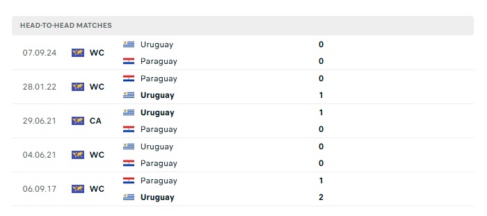 Phong độ gần đây Paraguay  vs Uruguay