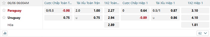 Soi kèo châu Á, kèo Paraguay vs Uruguay