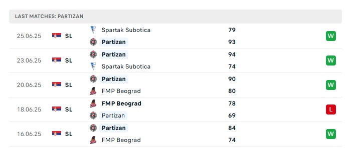 - Phong độ gần đây Partizan