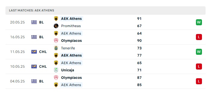- Phong độ gần đây AEK