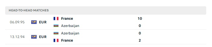 Theo ghi nhận, phong độ thi đấu trong thời gian qua của Pháp đang cực kỳ áp đảo đối thủ. Trong 7 trận đã qua của Pháp, họ được ghi nhận đã có 5 chiến thắng và chỉ thua đúng 2 lần. Trong khi đó thì Azerbaijan lúc này đang chỉ hòa 3 và thua đến 7 trong 10 trận đấu gần nhất. Do đó, các chuyên gia đều khẳng định rằng Pháp sẽ tự tin có 1 chiến thắng áp đảo với cách biệt nhiều bàn trước đối thủ.