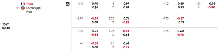Soi kèo châu Á, kèo Pháp vs Azerbaijan