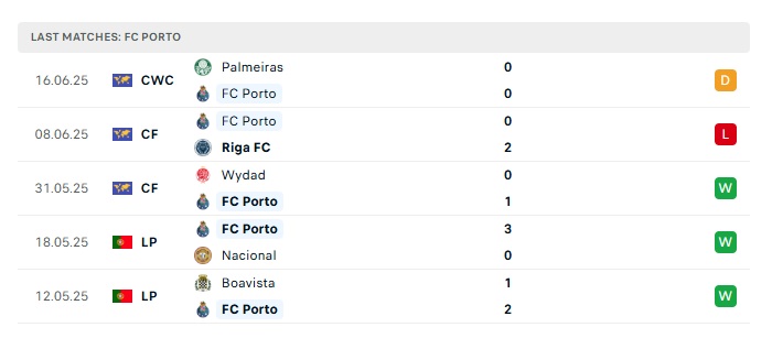 - Phong độ gần đây Porto