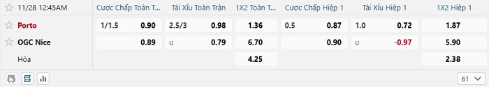 • Kèo tỷ số H1 Porto vs Nice: 1-0