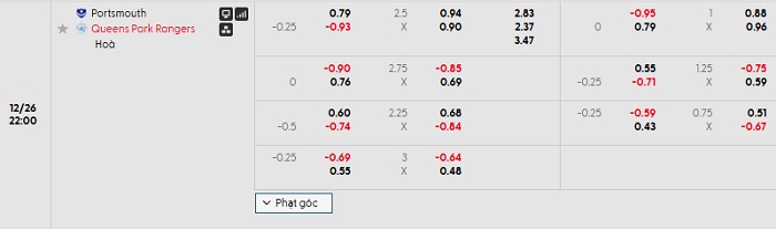 Soi kèo châu Á, kèo Portsmouth vs QPR