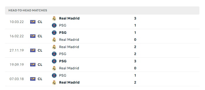 Phong độ gần đây PSG vs Real Madrid