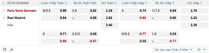 Soi kèo châu Á, kèo PSG vs Real Madrid