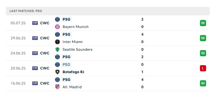 - Phong độ gần đây PSG