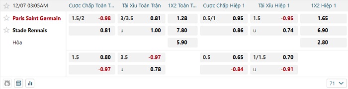 Bảng kèo nhà cái PSG vs Stade Rennais