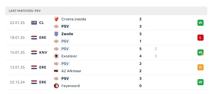 Phong độ gần đây PSV Eindhoven vs Liverpool