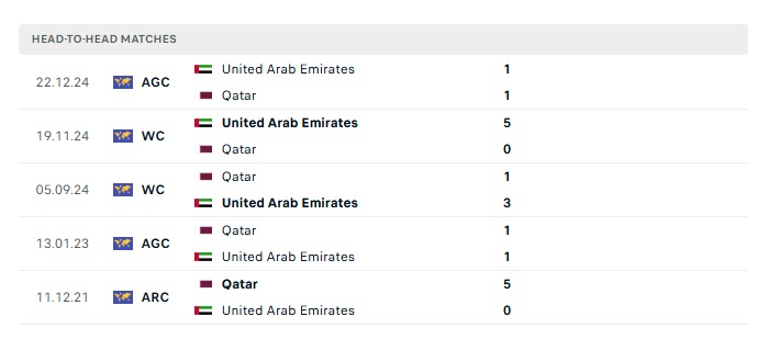 Phong độ gần đây Qatar vs UAE
