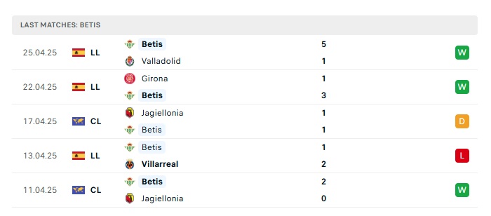 Trong thời gian vừa qua, đội chủ nhà Betis cùng đối thủ Fiorentina đã có được phong độ thi đấu vô cùng tốt. Trong 8 trận đấu đã quia, chủ nhà Betis đã có cho mình 5 chiến thắng, 2 trận hòa và chỉ thua 1. Trong khi đó thì Fiorentina đã bất bại 8 trận đấu gần nhất với 5 chiến thắng và chỉ hòa 3 trận. Do đó, các chuyên gia đều tin rằng đội chủ nhà Betis hôm nay sẽ chỉ có thể thắng tối thiểu trước đối thủ.