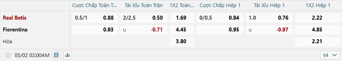 Soi kèo châu Á, kèo Real Betis vs Fiorentina
