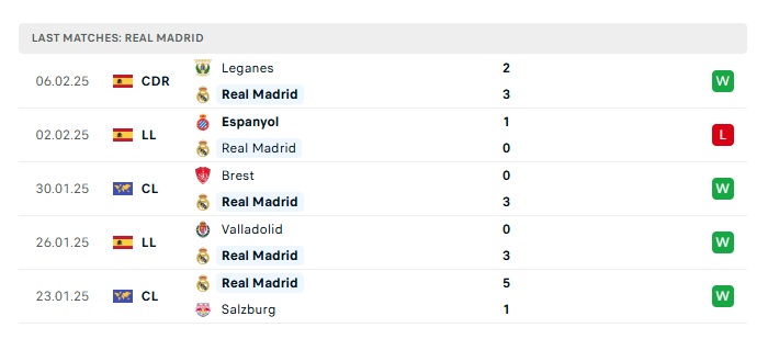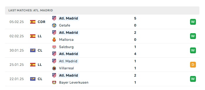 Phong độ gần đây Real Madrid vs Atletico Madrid