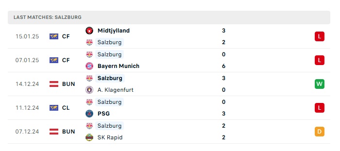 Phong độ gần đây Real Madrid vs RB Salzburg