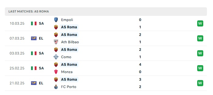 - Phong độ gần đây Roma