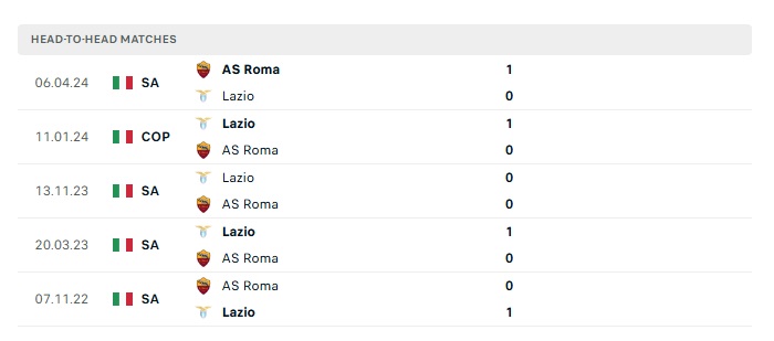 - Kèo tỷ số H2 Roma vs Lazio: 1-1