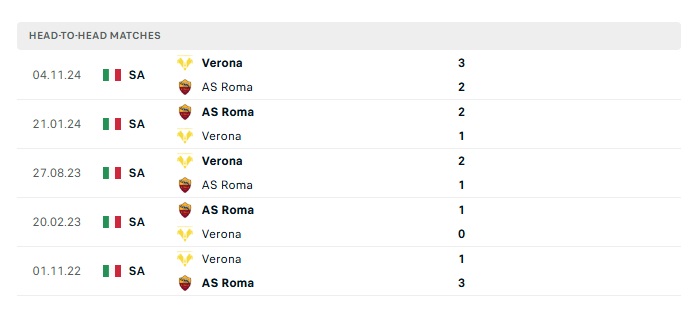 Phong độ gần đây Roma vs Verona
