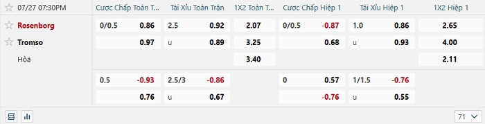 Bảng tỷ lệ kèo nhà cái Rosenborg vs Tromso