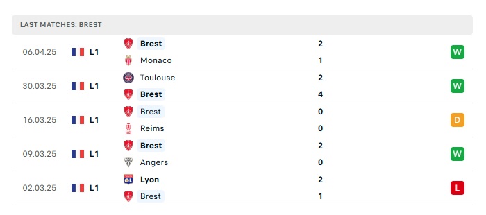Phong độ gần đây Saint Etienne vs Stade Brestois